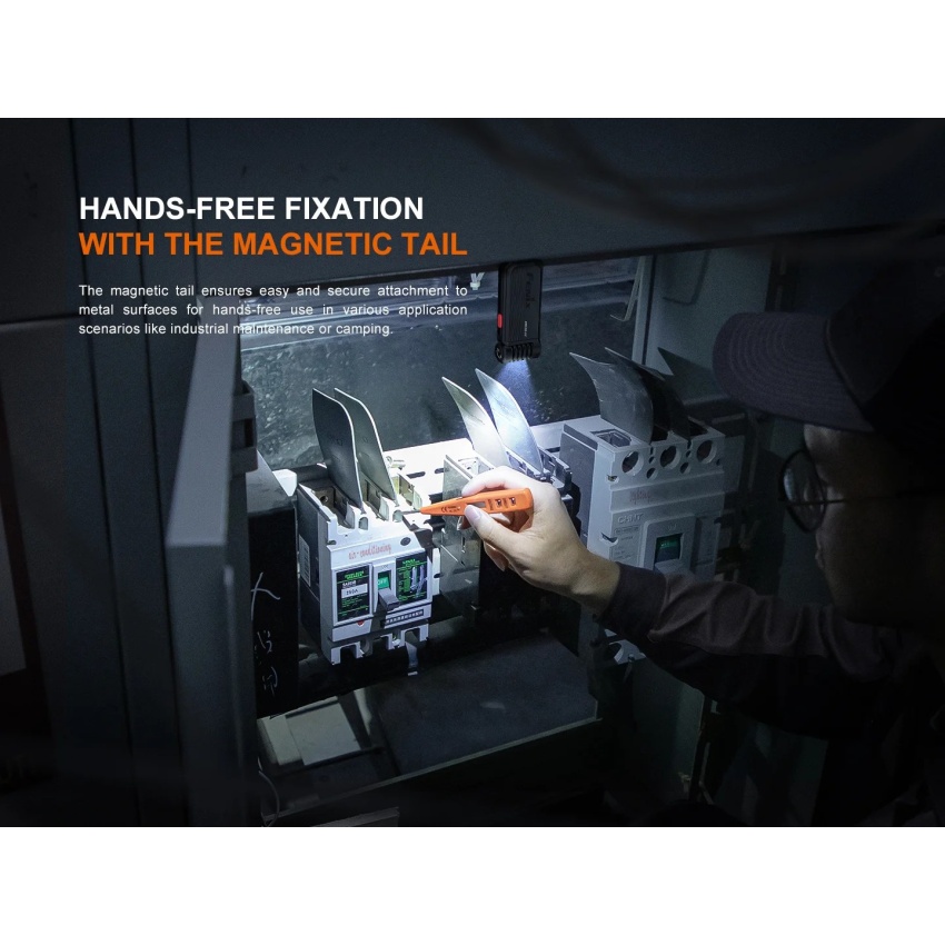 Fenix SW05R tarnitakse täiskomplektsuses, kuhu kuulub lamp koos integreeritud toiteallikaga, USB-C otselaadimiskaabel ning kasutusjuhend.